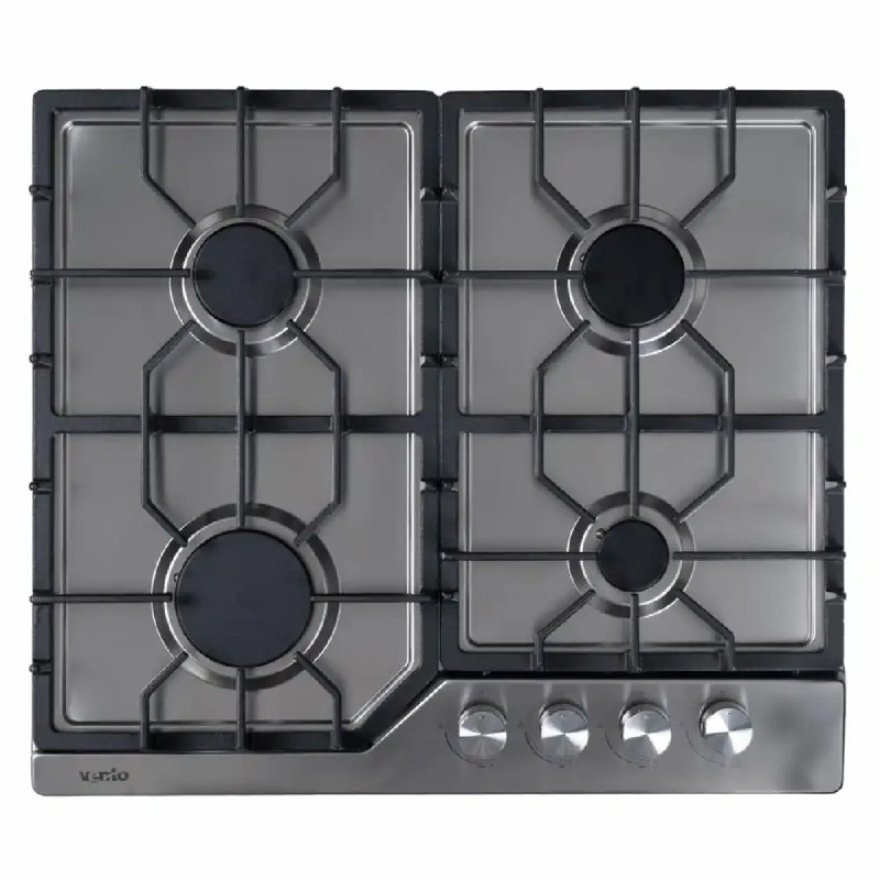 Варочная поверхность Ventolux HG L7 CS (X) устанавливается в столешницу глубиной не менее 60  см. Газовая поверхность Вентолюкс HG L7 CS (X) нержавеющий металл с чугунными решетками, газ-контролем и   электроподжигом.